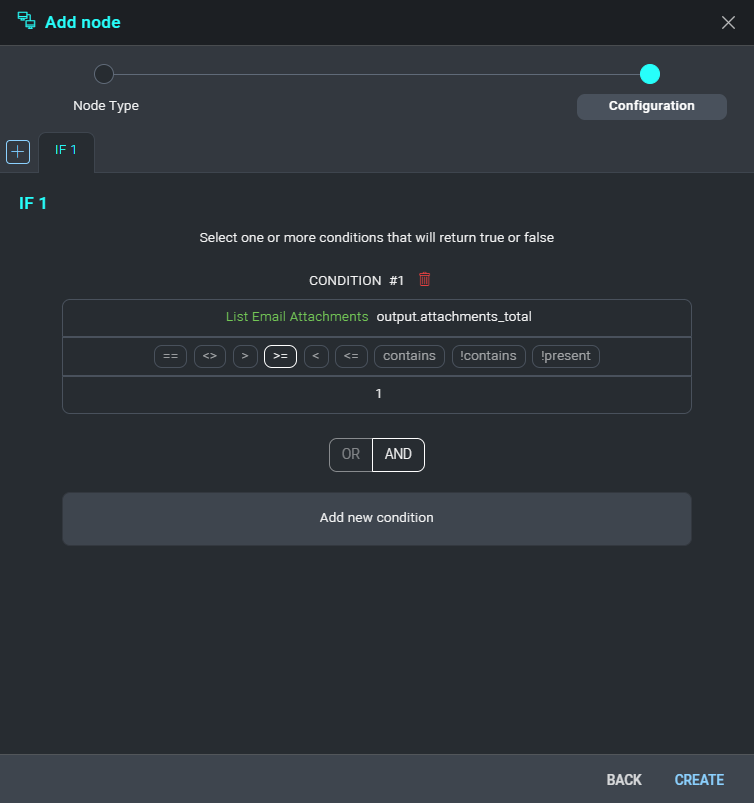 - Now we need a new node of type Condition.