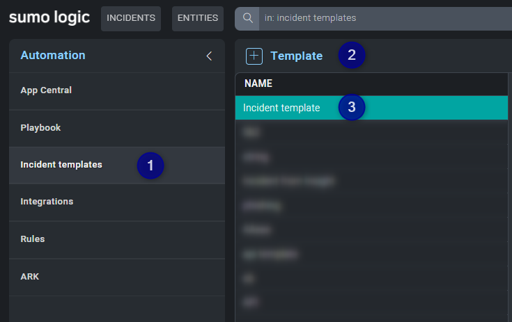 - In the Automation section click on Incident templates.