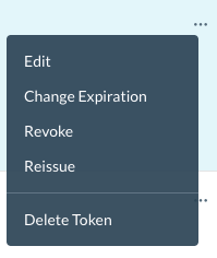 When finished, click OK. After being created, tokens can be managed by clicking the adjacent ... icon for the token and selecting one of these options: