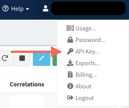 Log in to SpiderFoot, select your username from the menu, choose API Key and copy your API Key.