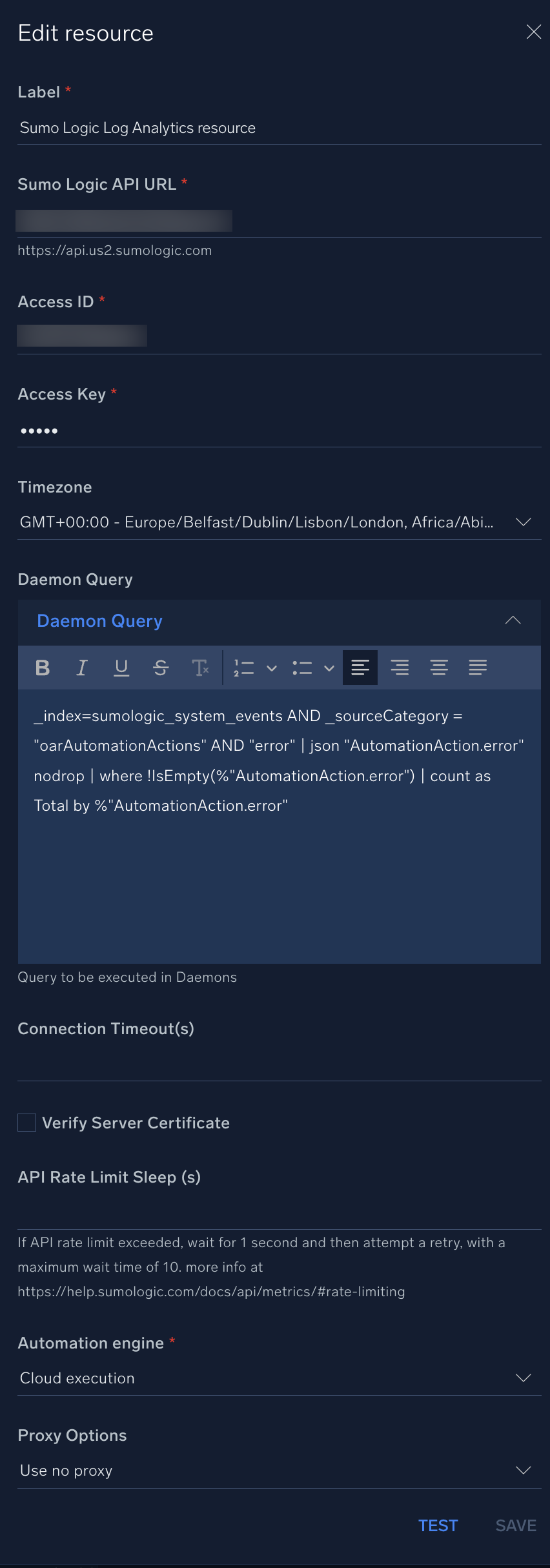 Configure Sumo Logic Log Analytics in Automation Service and Cloud SOAR