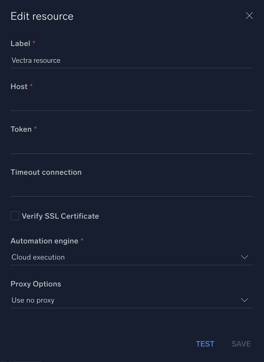 Host. Enter your Vectra host address, for example