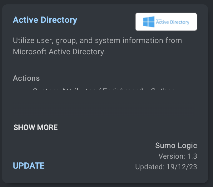 The purpose of this section is to provide you the information you need to update your integrations to include all types of actions that should be present in that integration, for example, Containment, Custom, Scheduled, and so on. It's a good idea to update every integration installed from App Central to make sure you do not have any integrations without useful actions.