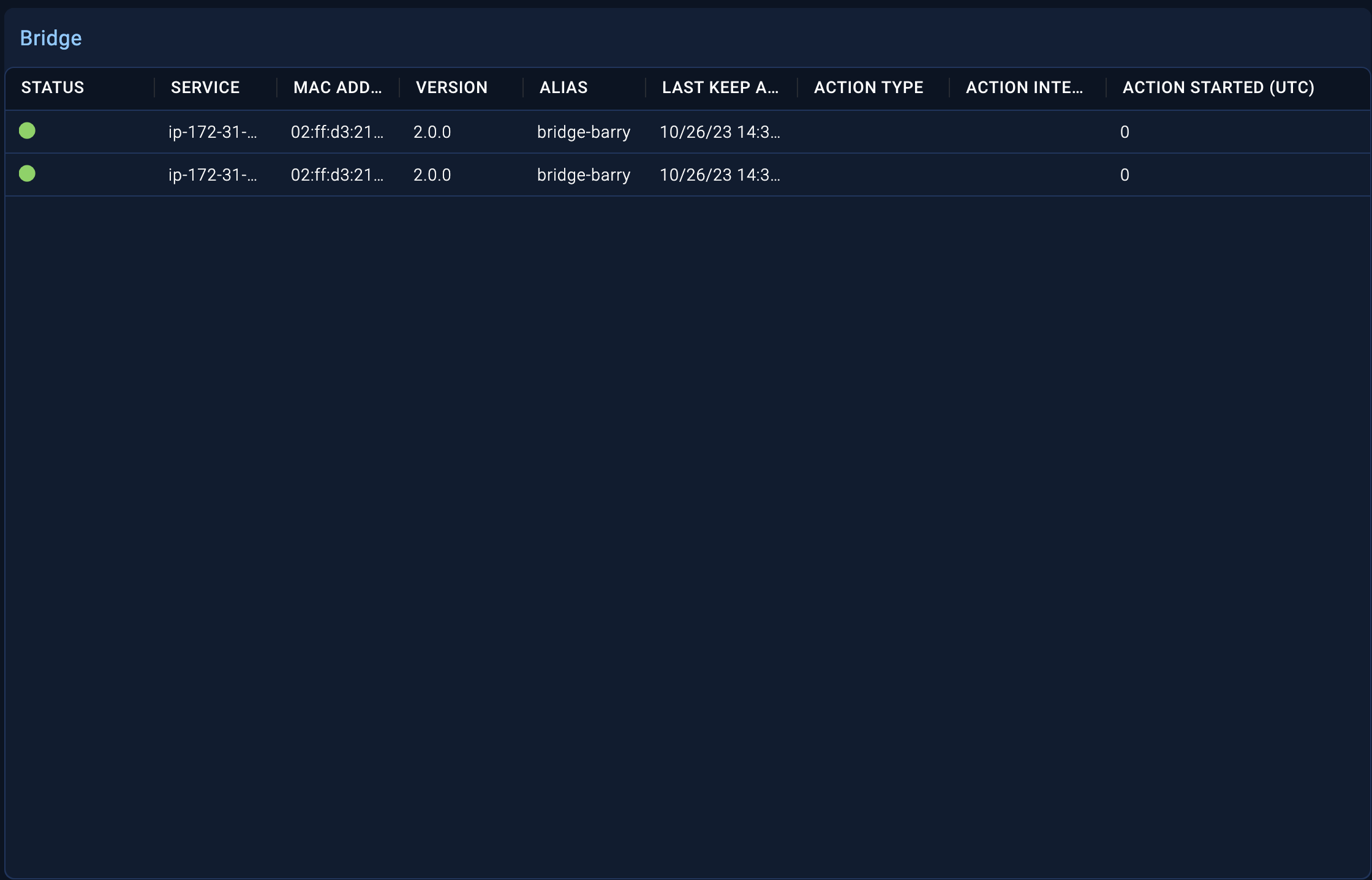 On the Bridge tab in the Automation Service UI, a list of live bridge agents will be displayed along with their status.