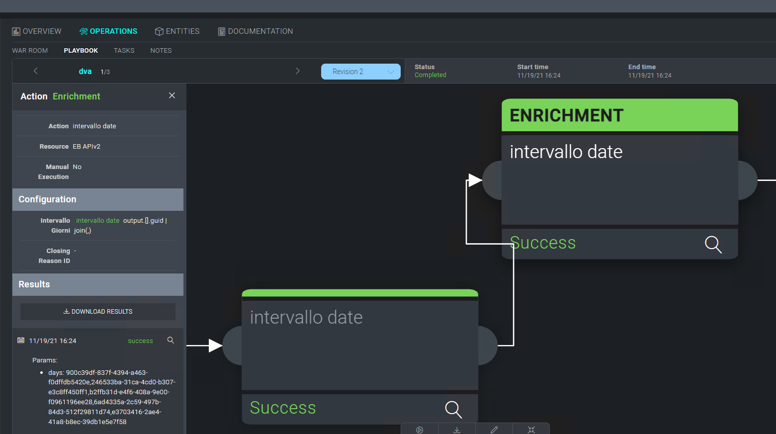 ...output from each integration action can be viewed in either table view or JSON view when executed. Table view is used to display a subset of the data, defined in the action definition file table_view attributes listed above, in a table format. For example, the following code in an action definition file would result in a table view with columns for ID, CVSS, A, C, and I: