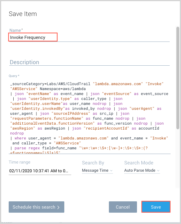 - Enter a unique Name in the text field. In our example below, we entered "Invoke Frequency".