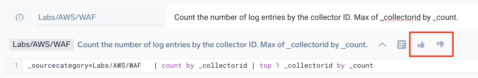 We want your feedback! Let us know what you think by clicking the thumbs up or thumbs down icon and entering the context of your query.