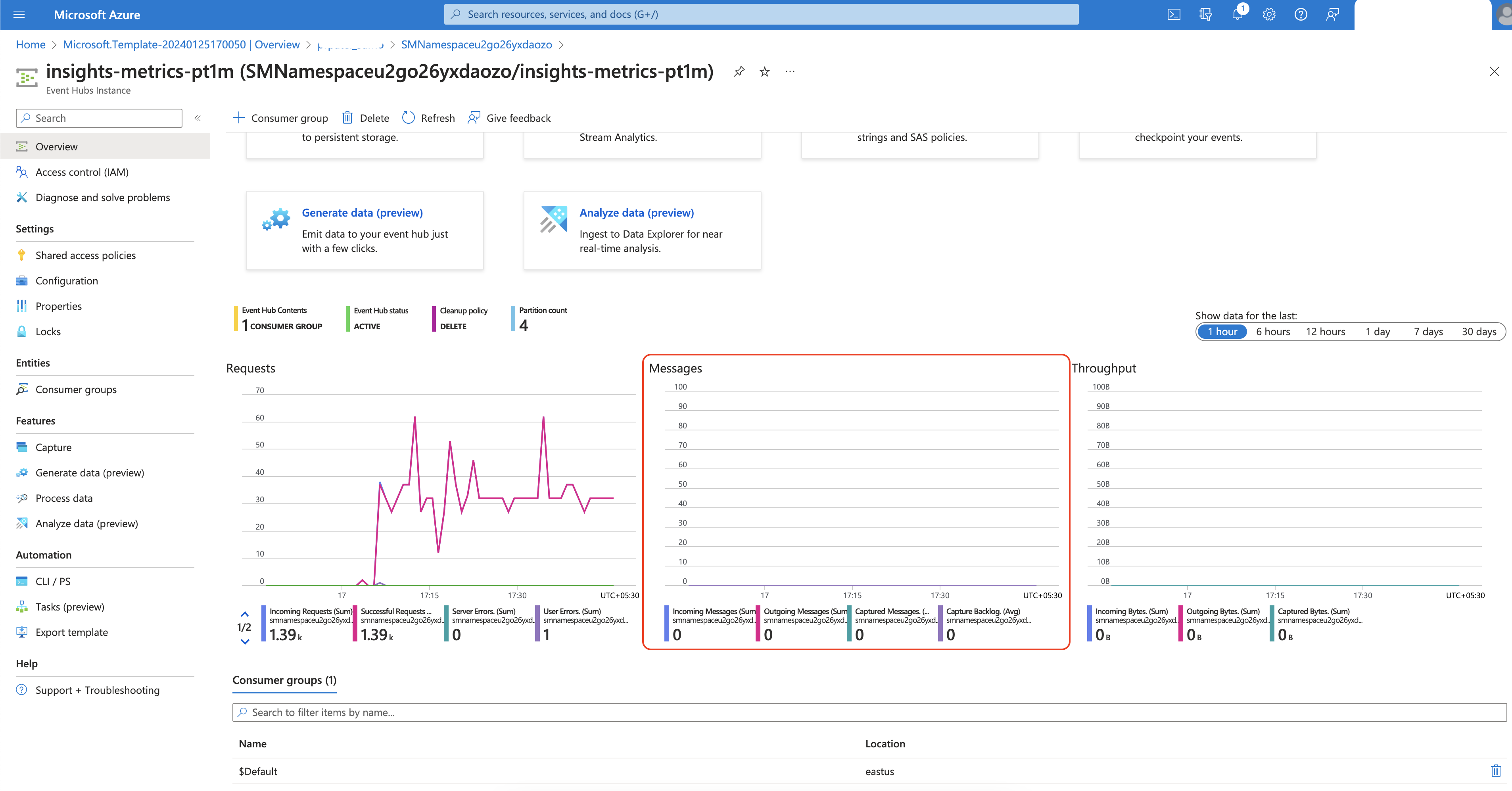 - Navigate to the event hub namespace present in your resource group you created or selected in Step 2. Configure Azure resources using ARM Template in the Azure Portal. And then go to the event hub.