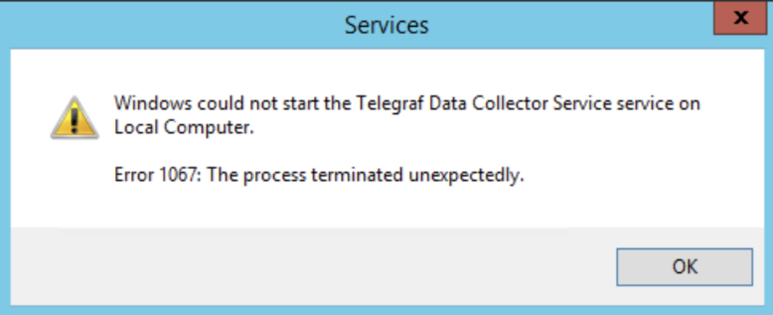 If you're seeing the following error in Microsoft’s Services Control Panel Application (“Services.msc”) after clicking on telegraf service, please verify whether you have opened the powershell as administrator. Learn more.