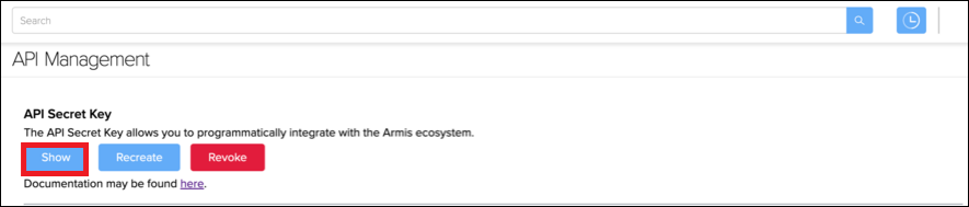 - Create a new API secret key if you haven't created one yet by clicking the Create button from the API Management page.