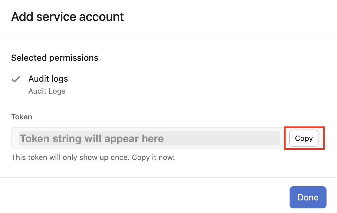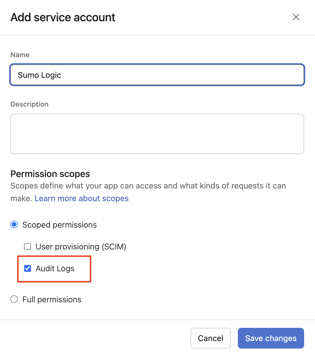 - Under Permissions scopes, choose Scoped permissions, and tick the Audit logs box.