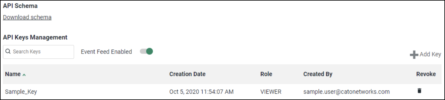 - Select Event Feed Enabled. After this, your account starts sending events to the Cato API server.