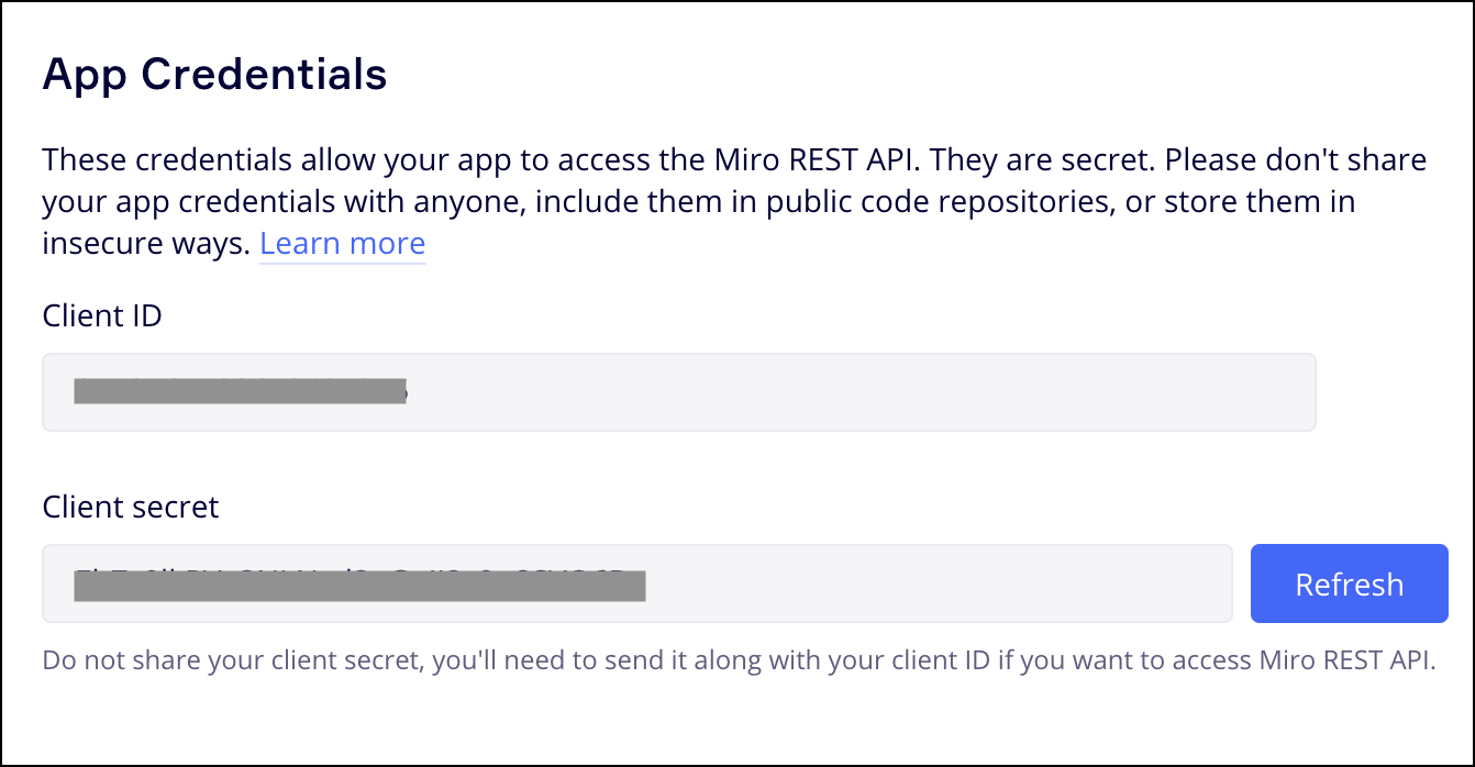 - Copy the Client ID and Client Secret from the App Credentials page.