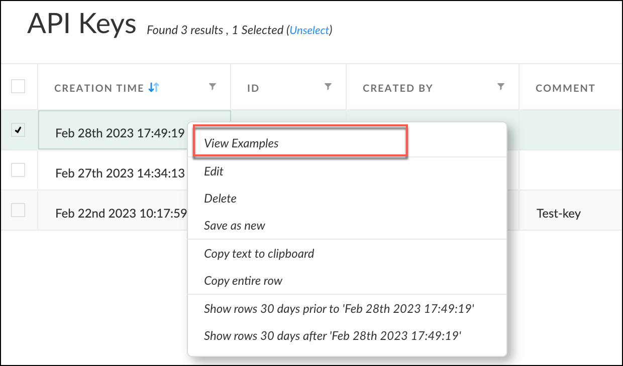 - Navigate to the API Keys page where you can view all the APIs you have created. Right-click on the API ID you have generated and select View Examples from the options that appear. From the API keys page, you can see all the APIs created. Right click on the API ID you have generated, click View Examples from the options that appear.