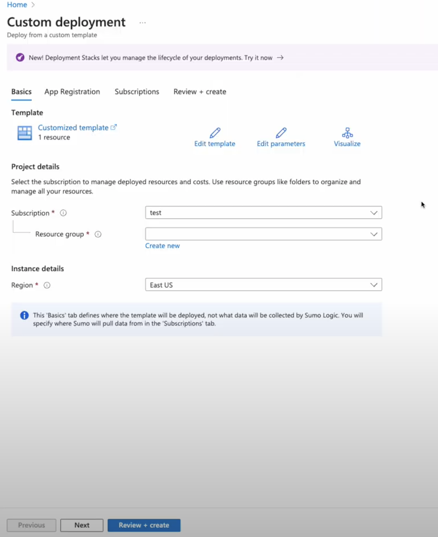 - Navigate to Sumo Logic's Custom Deployment wizard.