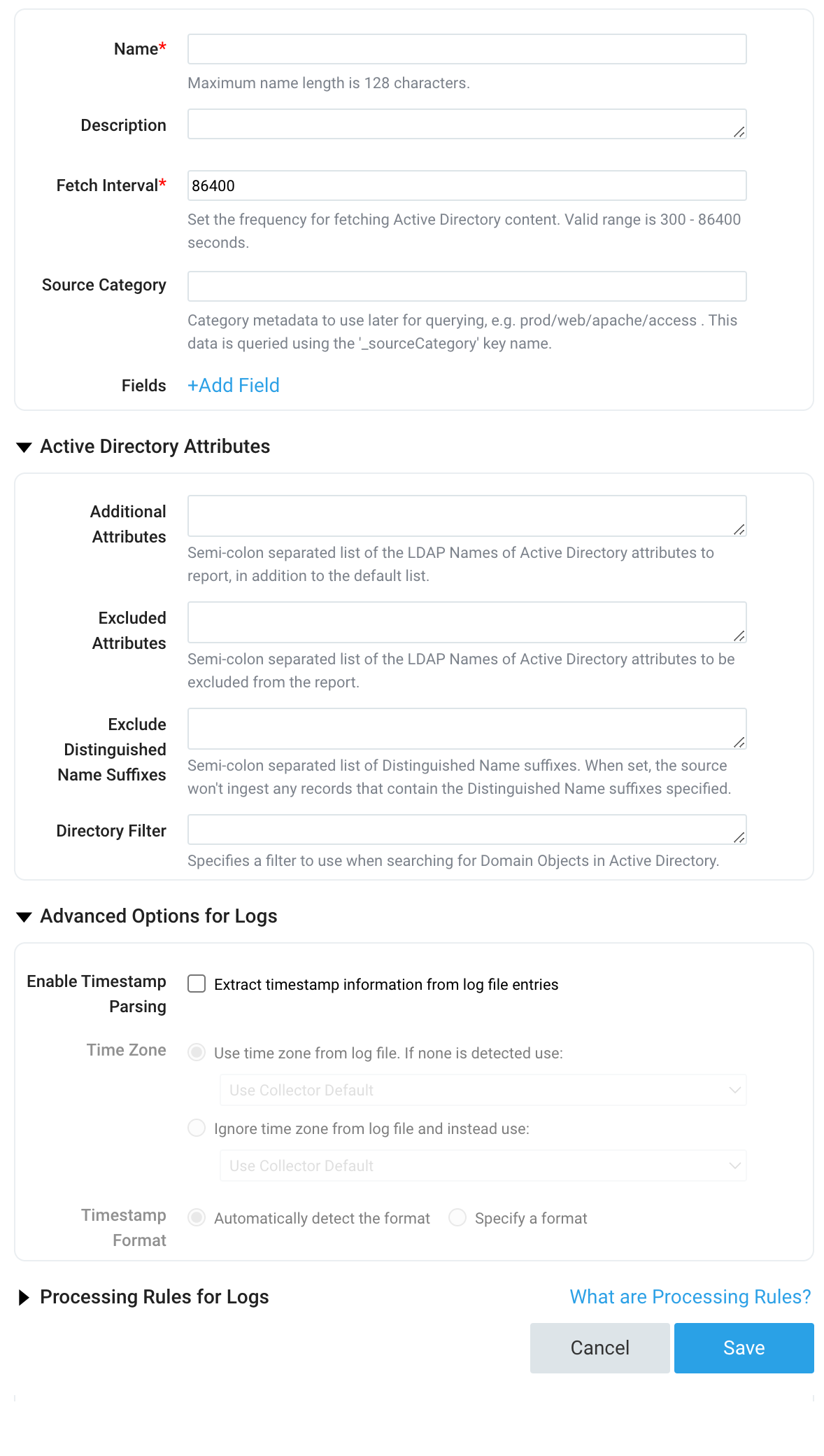 - Processing Rules for Logs. Create any processing rules you'd like for the new Source.