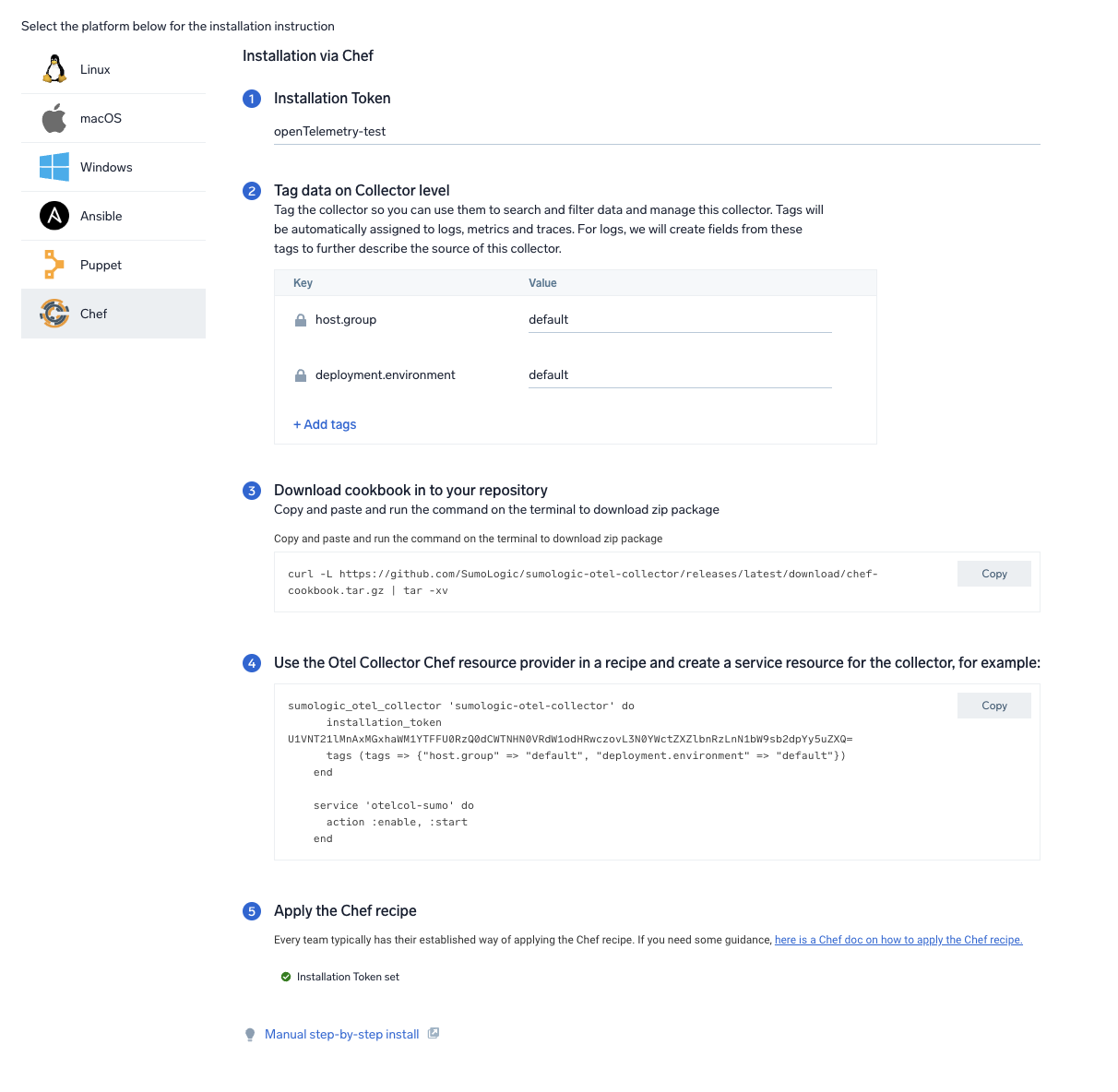 - Follow auto generated steps to install the collector using Chef.