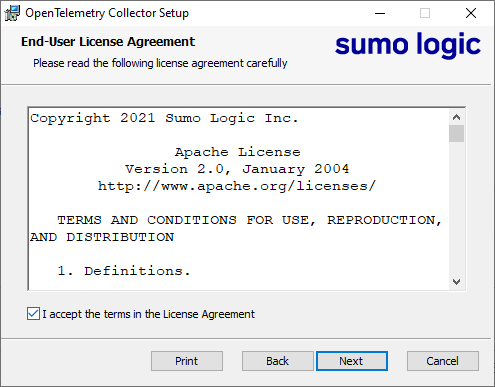 C:\>"C:\Program Files\Sumo Logic\OpenTelemetry Collector\bin\otelcol-sumo.exe" --version